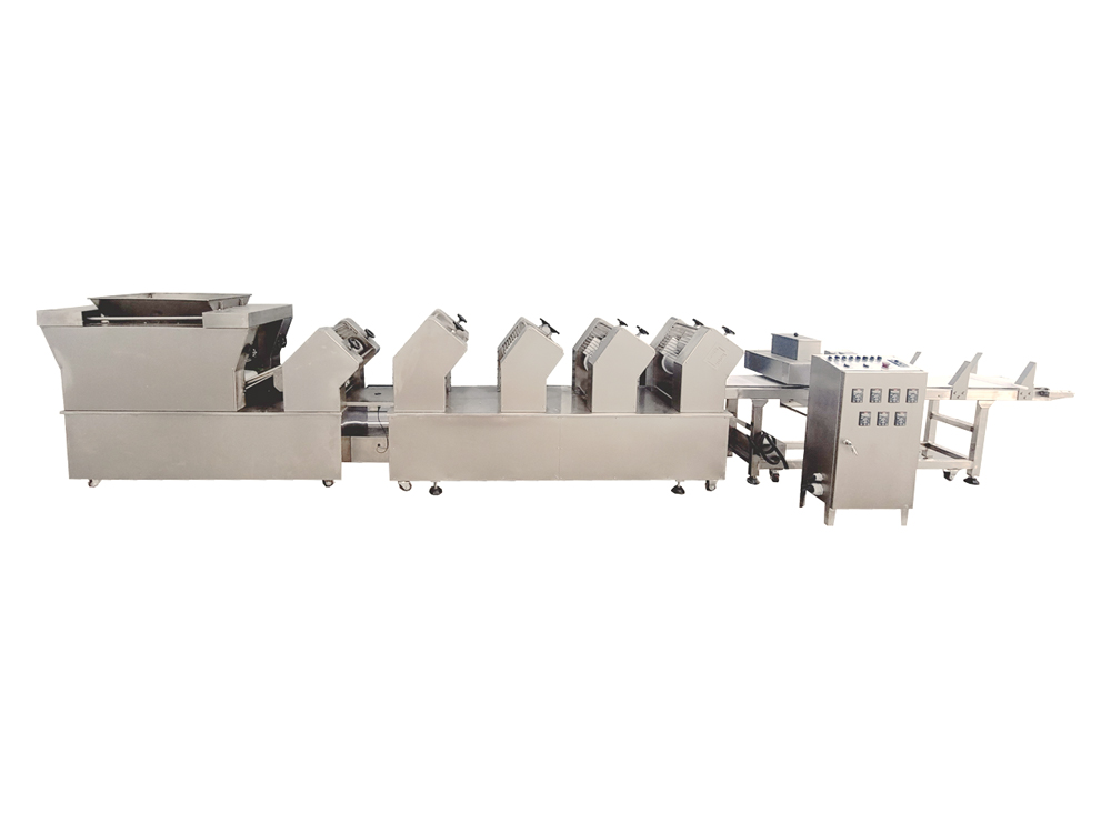 2、疊層機使面帶Z字型折疊,進一步豐富面帶網(wǎng)狀結(jié)構(gòu),提高面筋度,設(shè)備可根據(jù)客戶場地需求選擇不同的擺放形式。