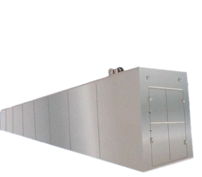 本機(jī)為隧道式多層干燥爐,爐內(nèi)干燥工作面分為10層,由10臺變頻調(diào)速電機(jī)分別控制,能理想的實(shí)現(xiàn)米雪餅餅坯的干燥。